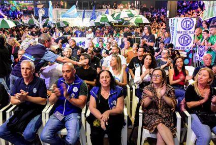 La Plaza de la Música se colmó con la concurrencia de militantes jóvenes, dirigentes históricos del peronismo local y representantes de distintos gremios: portuarios, empleados de comercio, bancarios, docentes, pasteleros, casineros, judiciales, profesionales de la salud, la UTEP, la Multisectorial de Jubilados y muchas otras organizaciones.