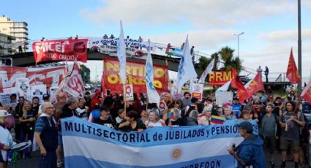 Organizaciones sociales, de Derechos Humanos, la Multisectorial de Jubilados y Pensionados de General Pueyrredon, MDP con GAZA y partidos de izquierda, reunidos en el colectivo “Consenso Antiimperialista”, se concentraron este martes por la tarde en el emblemático Puente de las Américas para protestar contra la presencia del presidente Javier Milei en la ciudad. La movilización, bajo la consigna “Ni Trump ni Milei. Por la Soberanía de los Pueblos”, formó parte de una jornada de repudio al evento denominado DerechaFest, en el que el mandatario argentino participó, y que fue calificado por los manifestantes como un acto “devaluado”.