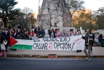 Diversas organizaciones, sindicatos, y Gobiernos se pronunciaron a favor de la seguridad de las personas a bordo de la flotilla internacional Global Sumud, tras la intercepción por parte de las fuerzas genocidas de Israel, en tanto que en nuestra ciudad como en distintas partes del país, se realizó, este miércoles por la tarde, una concentración en el Monumento a San Martin que, en el marco de una iniciativa nacional, se convocó para repudiar la agresión contra la Flotilla Global Sumud que llevaba ayuda alimentaria a la Franja de Gaza y que fue interceptada por el ejército israelí en esa misma jornada.