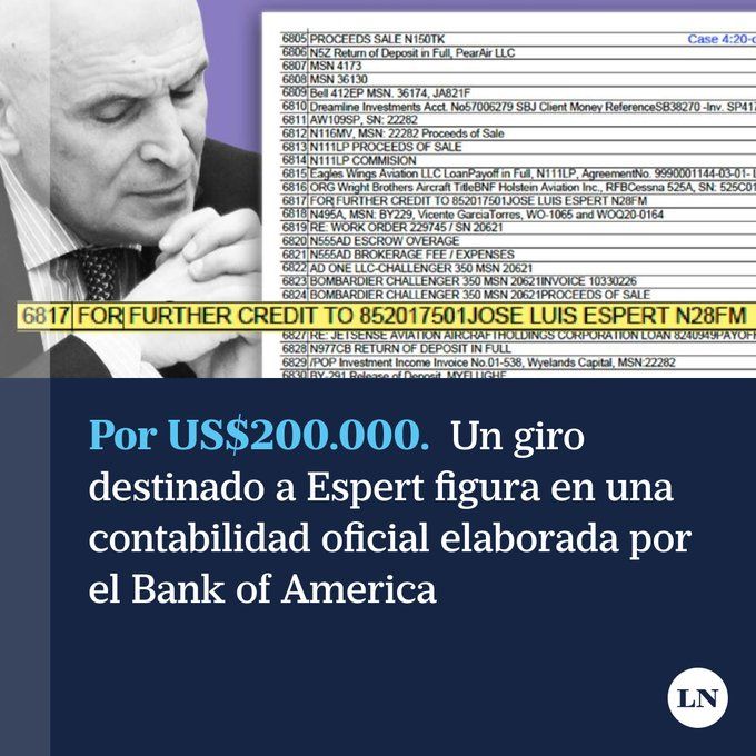 En ese contexto, las transferencias que recabó la fiscalía con el apoyo de BoA y de la consultora Deloitte adquirieron un valor probatorio central para condenar a Mercer-Erwin y requerir a la Argentina la extradición de Machado: cada instrucción de “further credit to” permite rastrear quiénes fueron los destinatarios finales de los fondos. Allí es donde consta el nombre de Espert, no como comprador o vendedor de aviones, sino como receptor de un giro.