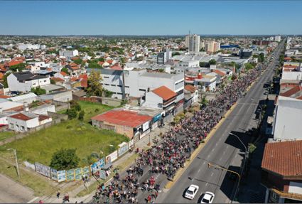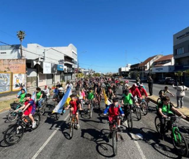 Las miles de bicicletas partieron pasadas las 8 para realizar el recorrido habitual. Este año, el lema fue “Hagan lío por un mundo mejor”, inspirado en el mensaje del Papa Francisco, honrando su testimonio y su llamado a ser protagonistas del cambio, saliendo al encuentro del otro y construyendo un mundo mejor.