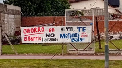En la esquina de Santa Cecilia y avenida Fortunato de la Plaza, apareció uno de los pasacalles: “Chorro en el barrio no llamamos al 911. Te metemos bala! Atte. vecinos”, se observa en uno de los pasacalles.