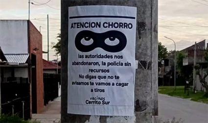 “Las autoridades nos abandonaron, la Policía sin recursos. No digas que no te avisamos, te vamos a c... a tiros”, fue otro de los carteles firmado por “Vecinos Cerrito Sur”.