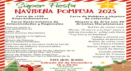 El sábado 20 de diciembre, de 15 a 20, se realizará una nueva edición de la Súper Fiesta Navideña Pompeya, conocida como “La más grande de Mar del Plata” y declarada de Interés Cultural por el Municipio de General Pueyrredon. Como cada año, el evento invita a la comunidad a compartir una tarde festiva con espíritu navideño y actividades para todas las edades. La entrada será libre y gratuita.