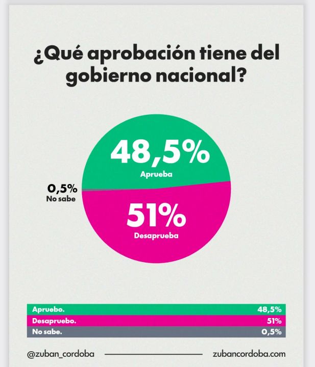 En el plano electoral, el sondeo exploró un escenario de reelección presidencial en 2027. Allí, el 38,1% de los encuestados manifestó que volvería a votar a Milei, mientras que una mayoría del 54,5% afirmó que no lo haría. El 7,4% restante no expresó una definición.