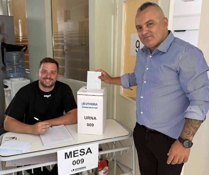 Minutos después de las 9 de la mañana emitió su voto el secretario general de UTHGRA Mar del Plata, Pablo Santín, quien encabeza la lista única que busca renovar la conducción de la seccional.