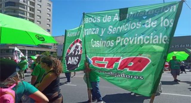 Los trabajadores del sector de Casinos de la Provincia de Buenos Aires, a través de la Asociación Gremial de Administración, Maestranza y Servicios de Casinos (AMS), continúan con sus protestas exigiendo una respuesta urgente a sus reclamos salariales y laborales. Este viernes, se movilizaron a la delegación local del Ministerio de Trabajo de la Provincia, donde sus representantes gremiales fueron recibidos por representantes del organismo y expusieron la crítica situación que atraviesan los empleados de los casinos provinciales.