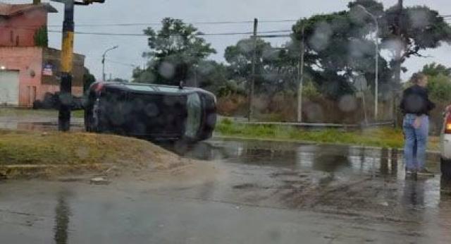 El episodio más impactante tuvo lugar en la intersección de Champagnat y Strobel, donde un auto perdió el control, giró sobre la calzada y terminó sobre el cantero central, dejando una imagen que sorprendió a quienes circulaban por la zona.